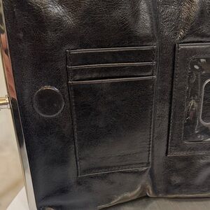 Hobo Black Leather Clutch w/Pockets Galore & Silver Metal Clasps