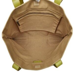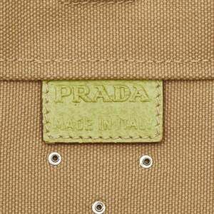Prada Triangle Logo Plate Tote Bag Handbag Beige Green Canvas Leather Women's...