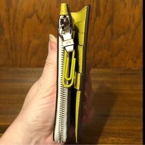📎 Exterior: zip-around coin pocket with coated paper clip zipper pull