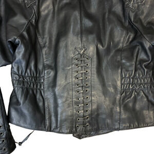 Vintage Women’s Fitted Harley Davidson Black Leather Biker Jacket Size 40/12 W