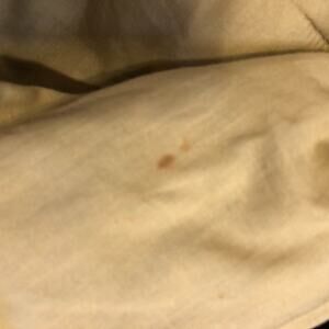 Small spot on the inner lining of jacket. Other than that small imperfection this jacket is in great condition!