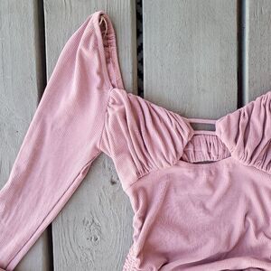 Princess Polly Erase Me Ruched Bodycon Dress Mini Long Sleeve Ribbed Pink 2US