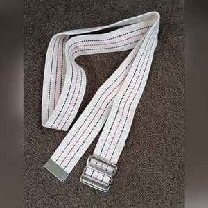 The wide design provides maximum support and makes it easy for caregivers or therapists to assist with standing, walking, and transferring. The belt is also made of a breathable fabric that helps to keep the wearer cool and dry. HSA/FSA eligible. Washable cotton gait belt. Please see photos for details