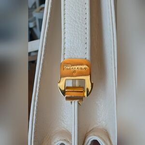 This elegant Vintage Ferragamo off white shoulder bag is perfect for any occasion. Its sleek design and versatile color make it a must-have accessory.