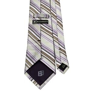BACHRACH Men's 100% Silk Necktie Striped Purple/ Gray/ Brown