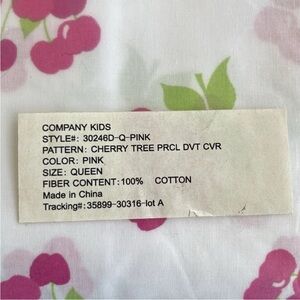 Company Kids Queen Duvet Cover Cherry Tree 100% Cotton White Pink Green New