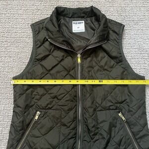 Old Navy Army Green Sleeveless Quilted Vest Women's Small Gold Colored Zippers