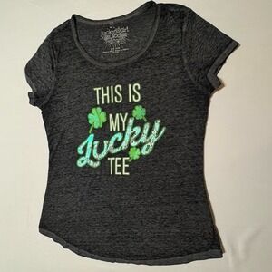 Rocker Girl Women's Black "Lucky Tee" Shirt With Green Shamrock Graphic Large