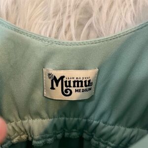 The Show Me Your Mumu Caitlin Ruffle Maxi Dress in size M is a formal, long dress designed for women. It features a V-neckline, spaghetti straps, and ruffle detailing, crafted from polyester in a striking green color. The dress is floor-length and requires dry cleaning. This item is pre-owned. Keywords: Show Me Your Mumu, Caitlin Ruffle Maxi Dress, green dress, formal dress, women's dress, V-neck, spaghetti straps, ruffle detailing, floor-length, polyester, dry clean only, pre-owned but in excellent condition.