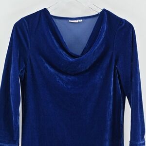 Vtg Y2k Blue Velvet Dress Womens Size 38 Cowl Neck Velour Whimsigoth Holiday