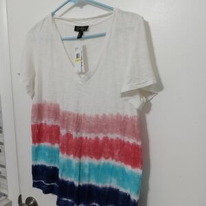 Jessica Simpson Multicolor Ombre Tie Dye Carly Short Sleeve V Neck Blowout T Shirt Size Medium Brand New With Tags 60%Cotton 40% Modal