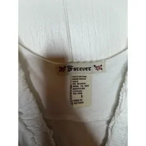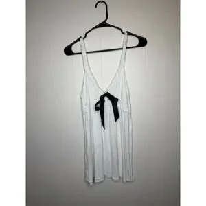 Y2K White Babydoll Tunic Top Size Small Black Bow Empire Waist Fairy Coquette