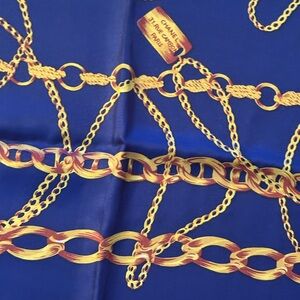 Chanel Vintage-Style Chain belt Navy and Pink Silk Scarf