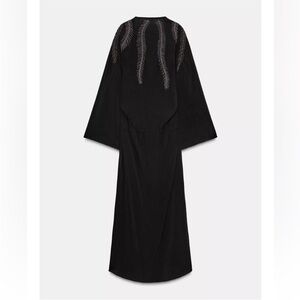 Long dress made of 100% viscose yarn. V-neck and long sleeves.