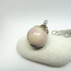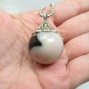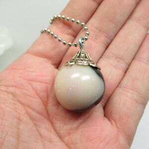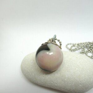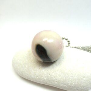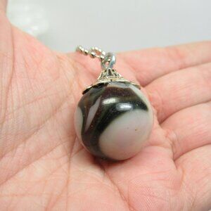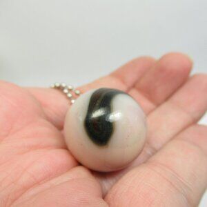 This listing is for the vintage marble pendant pictured. It is a new pendant made using a vintage Uranium glass marble and new silvertone components. It comes on a 25 inch silvertone ball chain but could be worn with most any chain or cord up to 4mm. The marble contains Uranium in the glass and glows really nicely under blacklight. This marble is pink and custard with a dark brown swirl. It is a one of a kind vintage marble with some character.