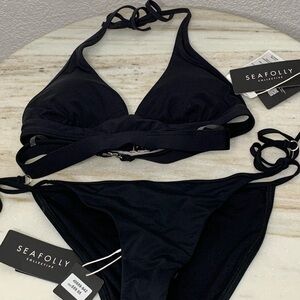 Seafolly bikini set string black NWT size large (bottom sz 10, top sz 8)