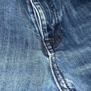 These jeans have a faded size tag and no material tag. I will describe them as best I can.