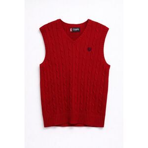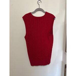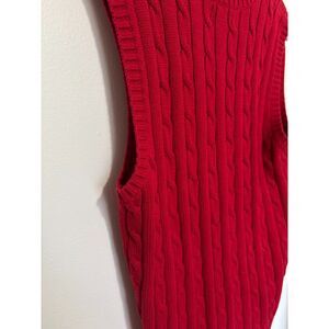 Chaps XL Red Cable Knit Sweater Vest Cotton Preppy V Neck Layering Academia