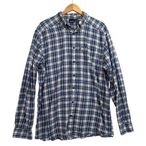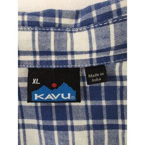 Kavu Button Up Shirt Mens XL Blue White Plaid Long Sleeve Casual Outdoor Hike