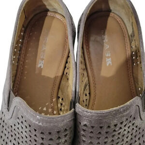 Trask Ali Bronze Silver Metallic Perforated Leather Flats Loafers 8.5