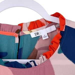 DR2 Floral Print Ruffle Sleeve Top Womens Size S Abstract Sleeveless Blouse