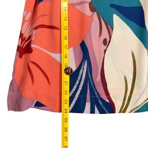 Keywords: DR2, floral print, sleeveless top, blouse, womens top, ruffle sleeve, abstract print, summer top, casual top, dressy top, size S, polyester top, pink, orange, teal