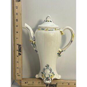 Vintage Art Pottery Tall Coffee Tea Pot White Hand Painted Floral 11 Inch