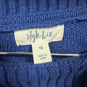 Style & Co Ribbed Button Blue Detail Tunic Sweater Size 1x