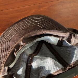 Vintage Shotgun Red snapback hat featuring a bold graphic on the front panel. Classic brown and white colorway with an adjustable snapback closure. Made in the USA — great piece for collectors or anyone into vintage headwear.