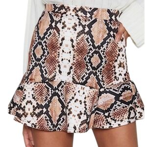 Nasty Gal Snake Print Ruffle Flare Mini Skirt Size Small (US 4)