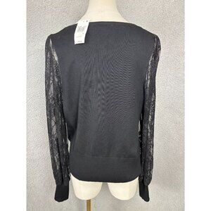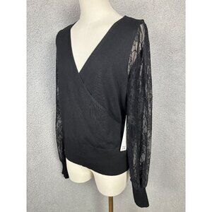 Madden Girl Juniors' Women Surplice-Neck Lace-Sleeve Sweater Black Size XL NWT's