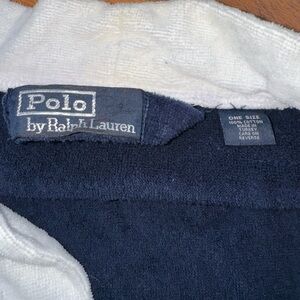 Navy Blue Polo Ralph Lauren Men’s 100% Cotton Plush Robe One size fits all. Very soft cotton material. Has bleach marks on left arm and left front pocket. Please look at all the pictures as this is the exact item you will receive. Color is most accurate in the first picture.