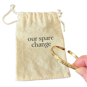 Brand new Our Spare Change Gold Floral Engraved Bangle Bracelet. A timeless and feminine design featuring intricate floral engravings on a polished gold-tone finish. This elegant cuff-style bangle is perfect for everyday wear or stacking with other bracelets for a chic layered look. Crafted with care and made to inspire a blend of classic and modern style.