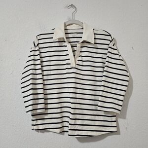 Features classic nautical stripes and a soft split-neck polo design, intended to be a versatile wardrobe essential. The shirt is crafted from 100% cotton and is designed with a relaxed fit, comfortable, easygoing style.