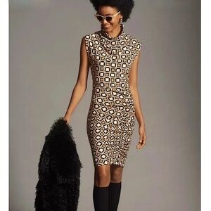 ANTHROPOLOGIE Maya Geometric Print Ruched Cowl Neck Sleeveless Sheath Dress