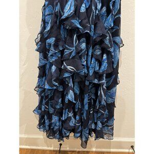 PatBO Nightflower Bustier Floral Indigo Blue Ruffle Maxi Dress Size 6 $1100