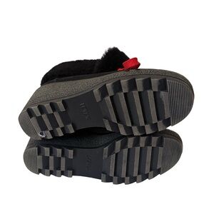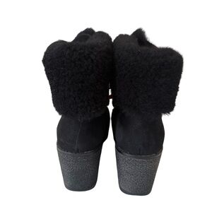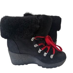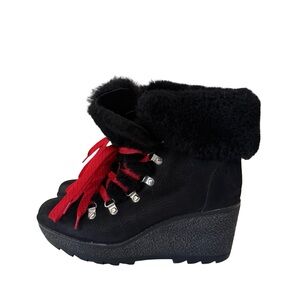 J Crew Womens boots Black nubuck leather Nordic wedge ankle lace faux fur SZ 8