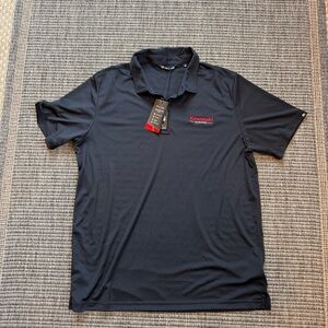 Sleek Kawasaki Engines black polo by Travis Mathew. Perfect for versatile wear. Comfortable fit.