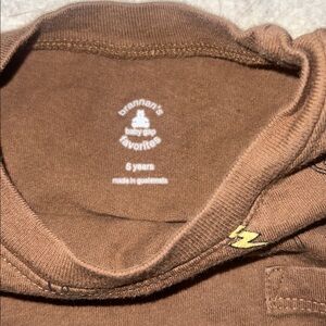 Brown long sleeve tee. Features guitar and lightning bolt print. Includes chest pocket.