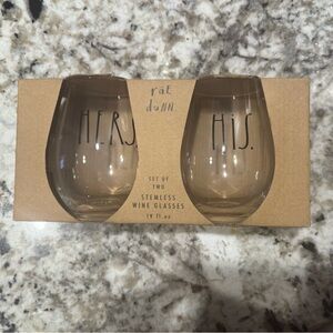 NIB! RAE DUNN His and Hers Stemless Wine Glasses