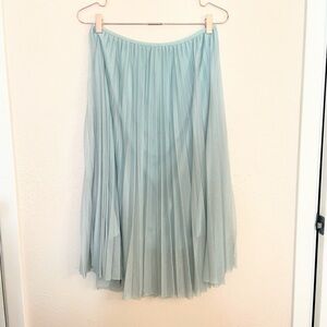 Soft, flowy Charlotte Russe pleated midi skirt in a dreamy light blue pastel. Features an airy chiffon/mesh overlay with delicate accordion pleats and a comfy elastic waistband. Lightweight, romantic, and super flattering with beautiful movement.