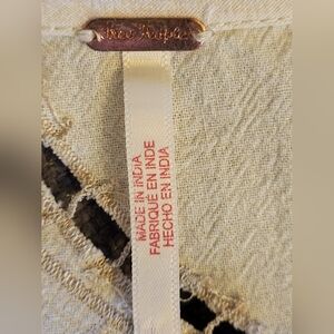Free People cream/ecru lace tie front blouse with scalloped hems and 1/2 balloon sleeves.