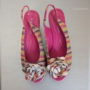 Naturalizer Espadrille Slingback Peep Toe Wedge Women 8M Pink Floral Stripe Mint