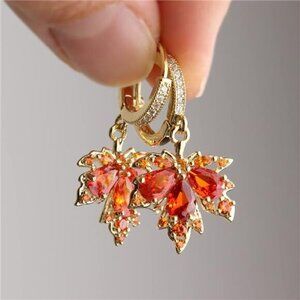 - Charming orange garnet red CZ fall leaves with scallope huggie ring, quality cubic zirconia, giving brilliant shine and vivid sparkle,very eye-catching, perfect for prom and cocktail party dressing.
