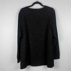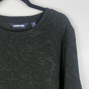 Lands' End Black Paisley Damask Jacquard Crew Neck Long Sleeve 1X Sweatshirt