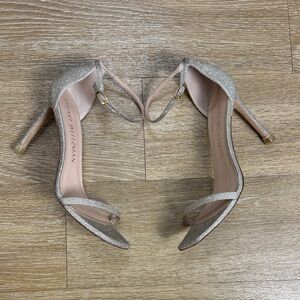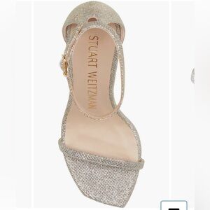 Stuart Weitzman Nudistcurve Ankle Strap Sandal in Gold Platino Glitter size 9.5