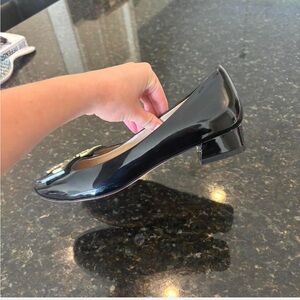 Chic black flats with signature gold logo detail. Sleek and versatile design.
