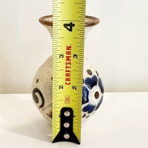 Beautiful handcrafted ceramic vase with blue floral design. Perfect for home decor. Charming ceramic vase with blue and brown floral design.