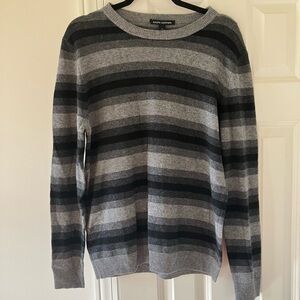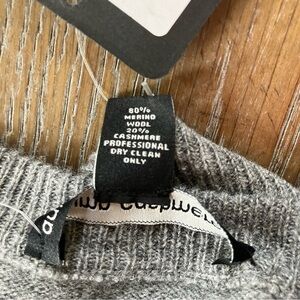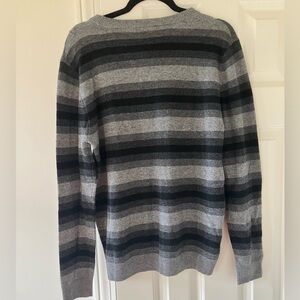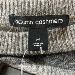 NWT Autumn Cashmere Gray & Black Striped Merino Wool Crew Neck Sweater Medium