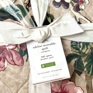 New with tag, new in its original packaging, Pottery Barn Adelise Floral Cotton Linen Reversible Full Queen Quilt